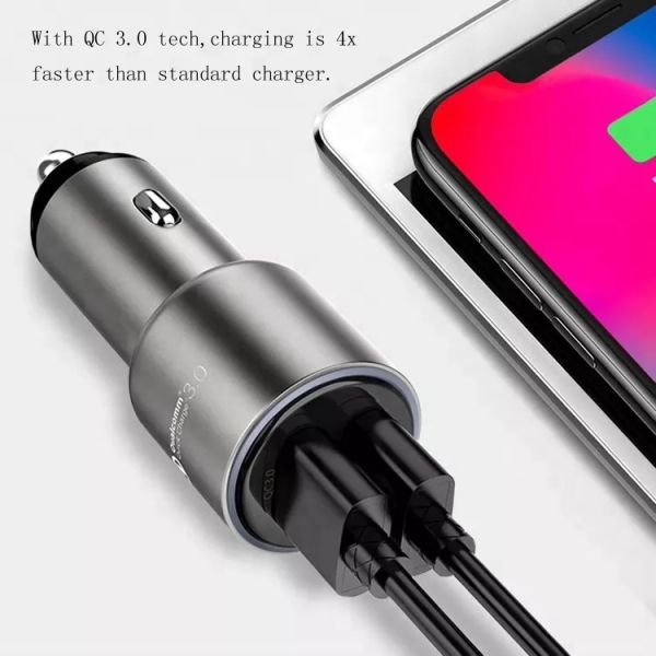 Fast Car Charger Adapter With 5.4A 30W Dual USB Charging Ports. 3A Qualcomm Quick Charge 3.0: provides 4x faster charging speed to compatible devices. 2.4A Smart IC USB port charges up to 2.5X faster than usual car adapter. universal dual USB car charger compatible with any Android and iOS mobile devices. Dual Port Qualcomm Quick Charge 3.0 Car charger adapter charges your mobile device at maximum charging speed your device supports. Built-in protection system against over-current, over-charging and over-heating ensures superior performance, safety and reliability.Smart IC Intelligent Adaptive Technology identifies your mobile device to provide fastest possible charge automatically. 30w Usb Cell Phone Car Charger simultaneous charges two devices at high speed.
